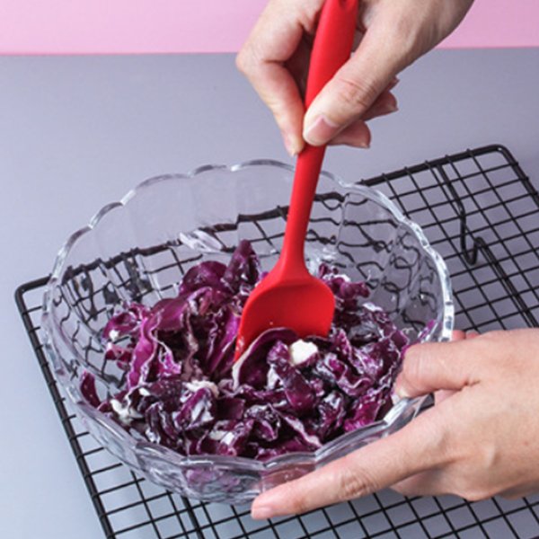 This ONE-PIECE DESIGN wholesale T spatula is made of high-quality silicone material. Heat resistance can be up to 500℉, which is safe to use for hot food. It is also dishwasher safe. This product will meet your daily needs of hot and cold food mixing which brings you more convenience. ONE-PIECE DESIGN ensures it has no residue to hide food and makes it less susceptible to bacteria and easy to clean. These heat-resistant silicone T spatulas measure approximately 7.87 inches in length and 1.7 inches in width. Mini size makes it easy to carry and flexible. It can be customized the color, you can customize any color you want.